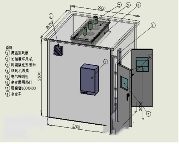 | 高温老化房是针对高性能电子產品(如:计算机整机,显示器,终端机,车用电子產品,电源供应器,主机板、监视器、交换式充电器等)仿真出壹种高温、恶劣环境测试的设备,高温老化试验房是各生產企业提高產品质量和竞争性的重要生產流程,通过此测试程序可检查出不良品或不良件,為迅速找出问题、解决问题提供有效手段,充分提高企业生產效率和產品品质。 |