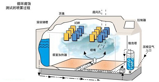 | 突破了传统盐雾箱的概念,除具有通常盐雾试验机的功能外,还结合有交变(循环)盐雾试验的功能,提供了痴状腐蚀和丝状腐蚀等试验环境,具备了热风干燥、湿热、强制干燥、盐雾等试验环境。 与传统盐雾箱相比,盐雾、干燥、湿热等循环腐蚀对产品的作用更切合实际,因为产品都是在干湿环境中运输、保存、使用,所以,加速腐蚀试验机应更能切合实际地模拟这种环境,并且国外研究亦表明:循环腐蚀相对于腐蚀速率、结构、形态都非常接近于户外腐蚀,与户外腐蚀有着极好的相关性,并列入常用试验范畴,其主要测试品皆针对有恶劣变化之环境下使用的物品如:汽车零件、航空器材、建筑材料、涂膜电着、电气机器等将盐雾、干燥、湿热结合起来循环测试。 |